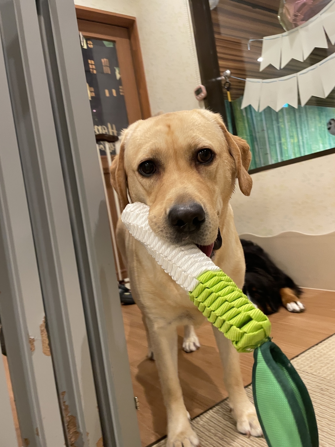 吸い込まれそうな大きな目が特徴のラブラドールの“モモ”は、岐阜県の飛騨 高山市の生まれ。まもなく三歳になります。レトリバーにしては小さいっ。あれれ?と思うほど小さい子です。君は本当に大型犬なの?と尋ねてしまいます。が、力は強い。やっぱり強いです。見てお分かりの通り、筋肉の塊です(笑)。皆様に会えるのが、皆様と遊べるのが嬉しくて楽しくて顔舐めるために飛びついてきますが、その力強さにビックリするかと思います。ラブラドールと言えば、盲導犬などの介助犬やセラピー犬として活躍する犬種なので、やっぱり人と一緒にいるのが好きなのです。そんなモモちゃんはボール遊びも大好き。先輩犬を押しのけて遊ぶ時もあります。たくさん触って遊んであげてください。