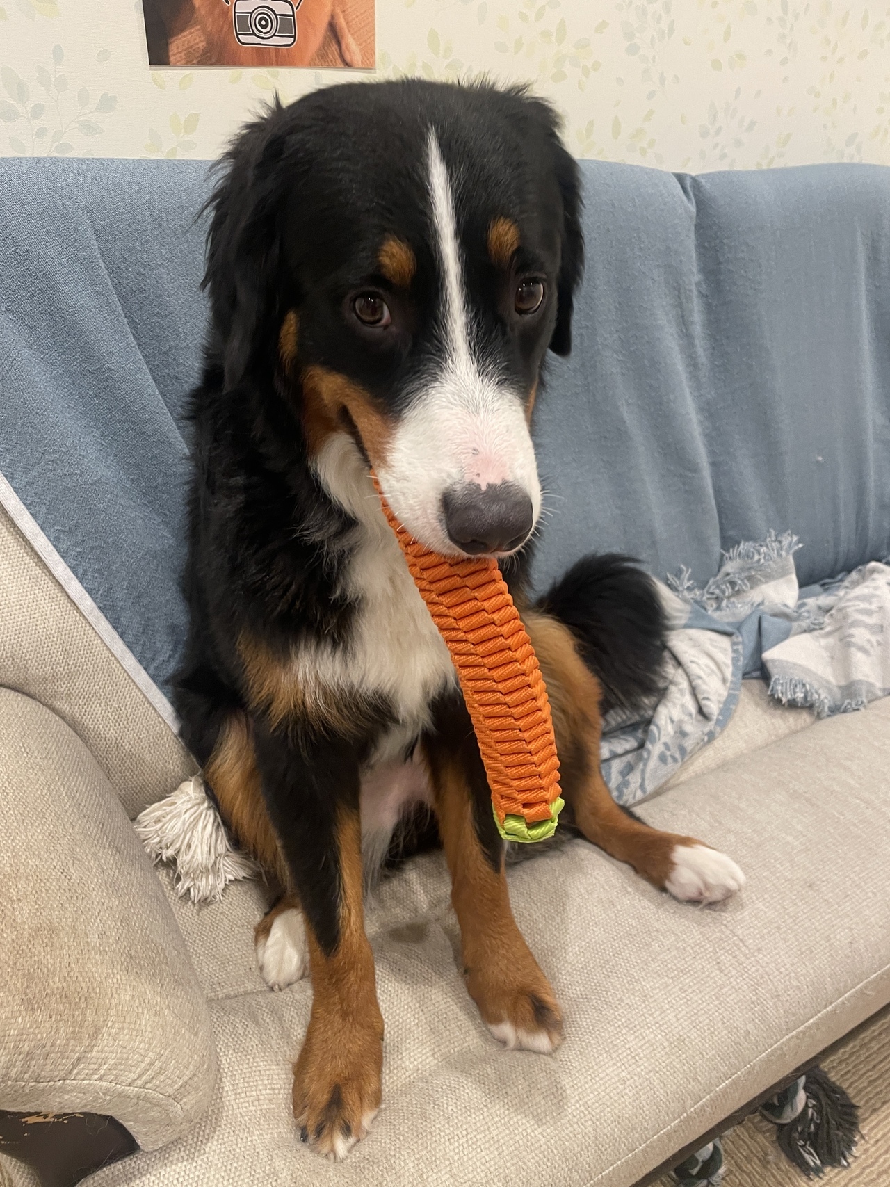 バーニーズマウンテンの“あんず”は、長野県生まれ 二歳です。先輩犬「ゆず」の姉妹ではありません(ゆずは香川県生まれです)。ゆずのようなどっしりとしたバーニーズらしさはなく、臆病で人見知りな子ですが一度懐くと離れない子です。体長や体高はバーニーズマウンテンドッグらしくなってきましたが、まだまだ、超大型犬のバーニーズにしては軽いあんずちゃん。これからゆっくりヨコも大きくしていこうと思います。性格はバーニーズらしく、人が好きです。が、神経質の一面もあります。初めて会う人には、やや距離を置き気味...近寄ると逃げることも...けど人が気になるので勇気を振り絞って近づいてくることも。最初は首辺りから優しく撫でてあげてください。慣れてくると少しずつ頭や体を触らせてくれます。