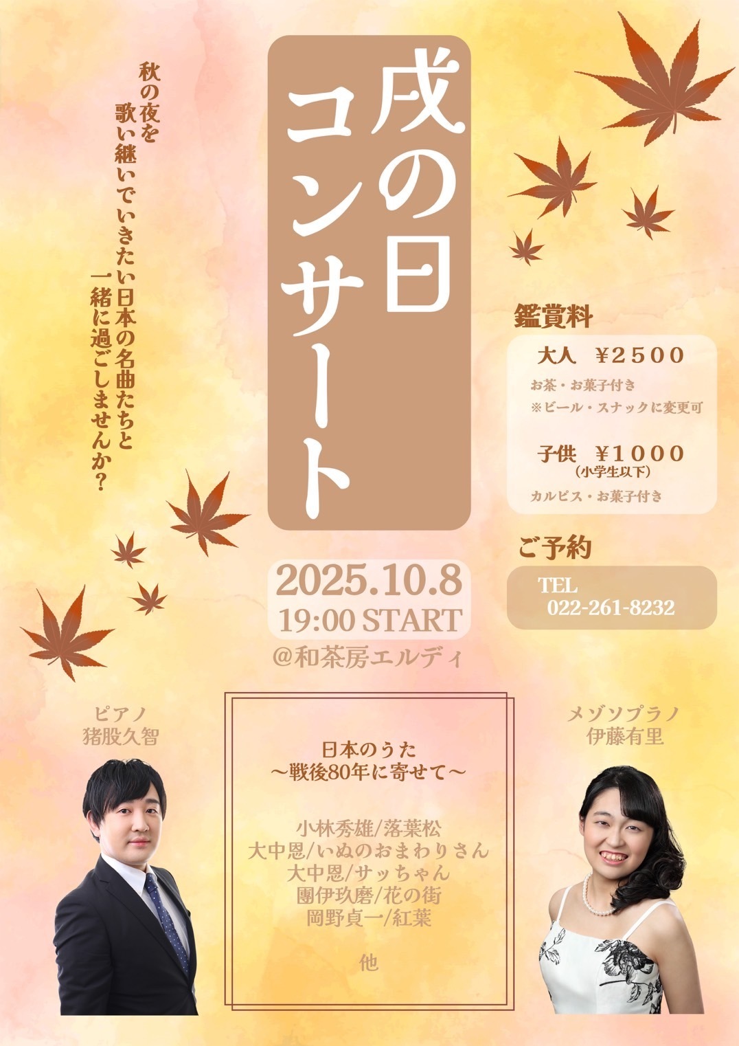 犬がメインの当店では、その戌の日にコンサートを開催します。和楽器・洋楽器、ジャンルにとらわれず、若手演奏家をお呼びして、耳に心地よい音楽をお届け致します。戌の日のカレンダーによって1回開催の月もあれば、2回開催する月もあります。音楽を気軽に楽しんでいただきたい。それが私たちの思いです。